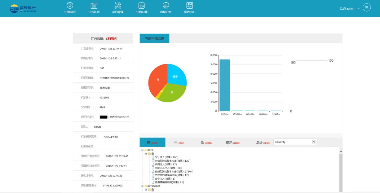 針對(duì)系統(tǒng)開發(fā)過程中的編碼階段、測(cè)試階段、交付驗(yàn)收階段、對(duì)各階段系統(tǒng)源代碼進(jìn)行安全審計(jì)檢測(cè),利用數(shù)據(jù)流分析引擎、語(yǔ)義分析引擎、控制流分析引擎等技術(shù),采用專業(yè)的源代碼安全審計(jì)工具對(duì)源代碼安全問題進(jìn)行分析和檢測(cè)并驗(yàn)證,從而對(duì)源代碼安全漏洞進(jìn)行定級(jí),給出安全漏洞分析報(bào)告等,幫助軟件開發(fā)的管理人員統(tǒng)計(jì)和分析當(dāng)前階段軟件安全的風(fēng)險(xiǎn)、趨勢(shì),跟蹤和定位軟件安全漏洞,提供軟件安全質(zhì)量方面的真實(shí)狀態(tài)信息。