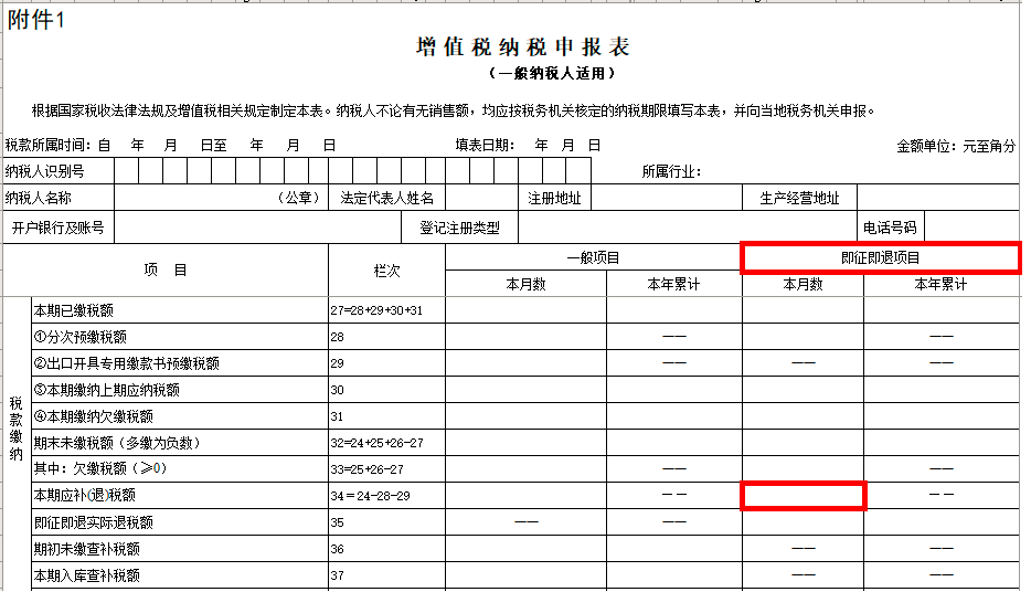 增值稅一般納稅人按規定享受增值稅即征即退政策的貨物、勞務和服務、不動產、無形資產的,在申報時須將此部分填寫在《增值稅納稅人申報(一般納稅人適用)表》及附表一的“增值稅即征即項目列”征(退)稅數據中。